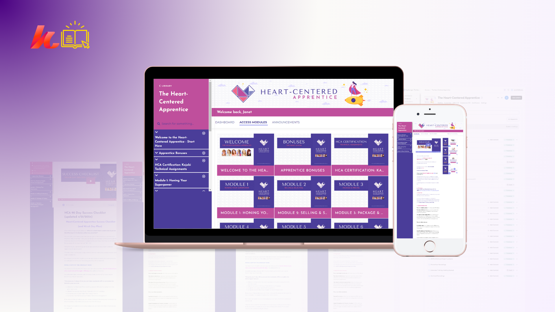 A choice of a Mini or Maxi customized course/membership complete with your course material laid out in an easy-to-navigate framework, with a customized sidebar and your preferences on module release and quiz options.